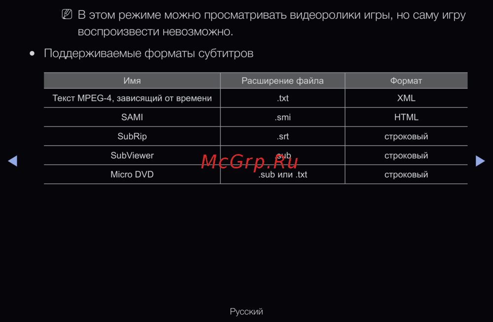 - Поддерживаемые форматы субтитров p.247