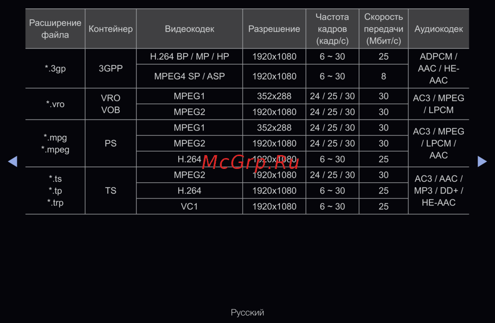 - Поддерживаемые форматы видео p.248