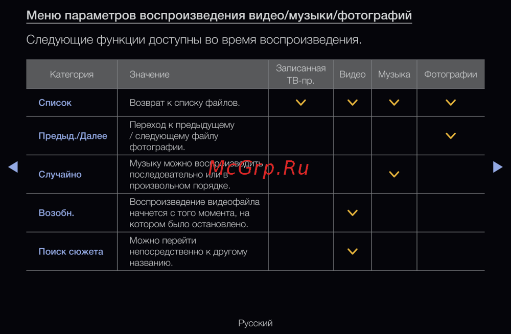 Samsung UE-46 D6100SW — параметры воспроизведения видео, музыки и фотографий [262/318]