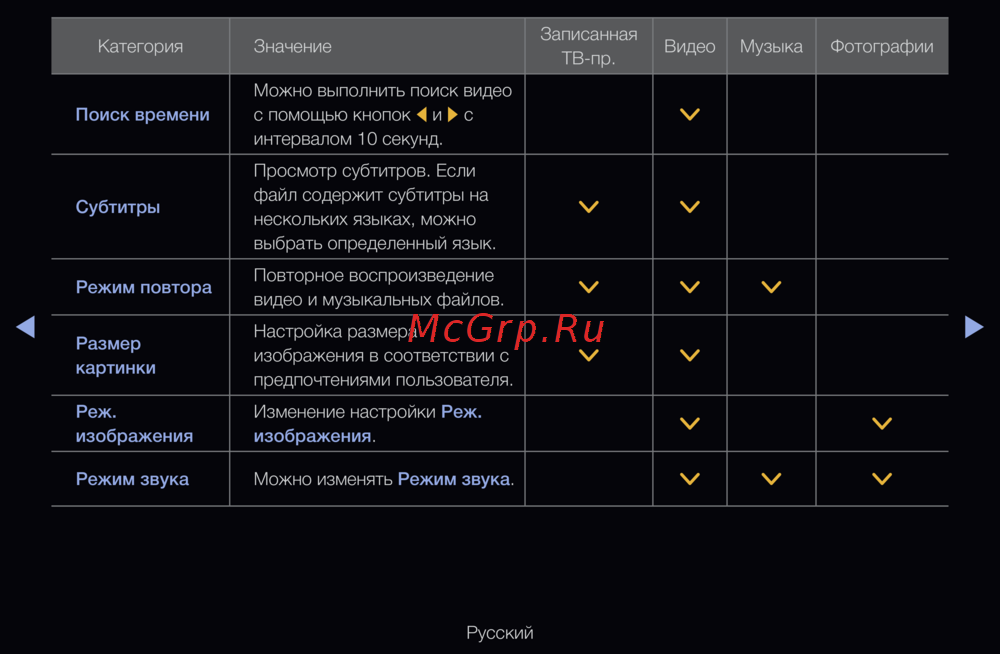 Samsung UE-46 D6100SW — настройки видео и аудио: управление воспроизведением и субтитрами [263/318]