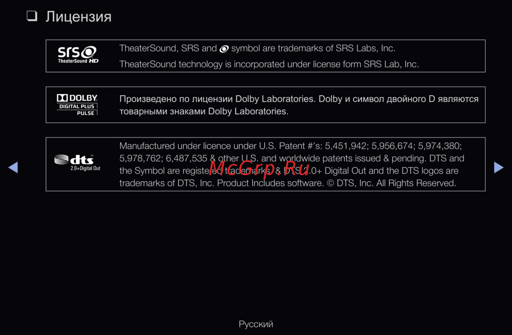 Samsung UE-46 D6100SW — лицензии и товарные знаки в аудиотехнологиях [307/318]