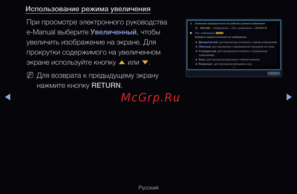 e-Manual выберите Увеличенный, чтобы
