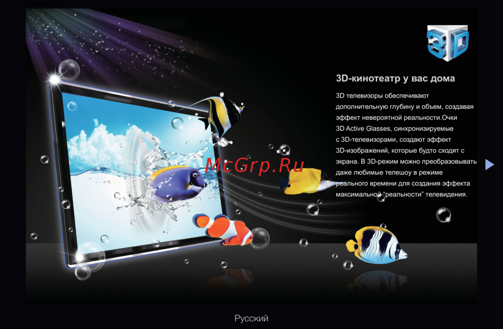 - Соблюдайте угол обзора и оптимальное расстояние до телевизора при просмотре изображений в формате 3d p.169