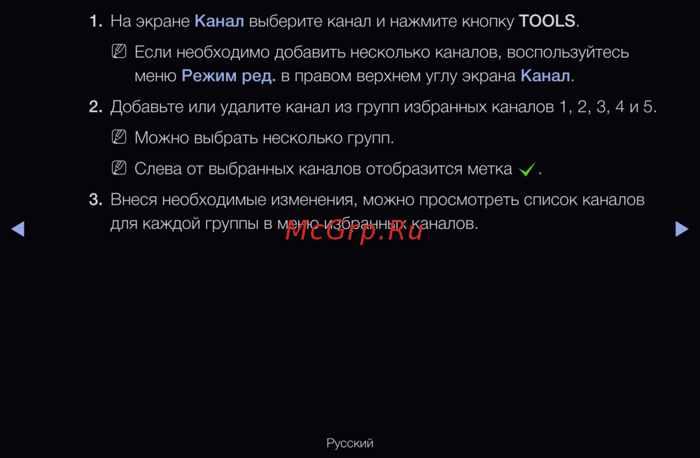 2. Добавьте или удалите канал из групп избранных каналов 1, 2, 3, 4 и 5.