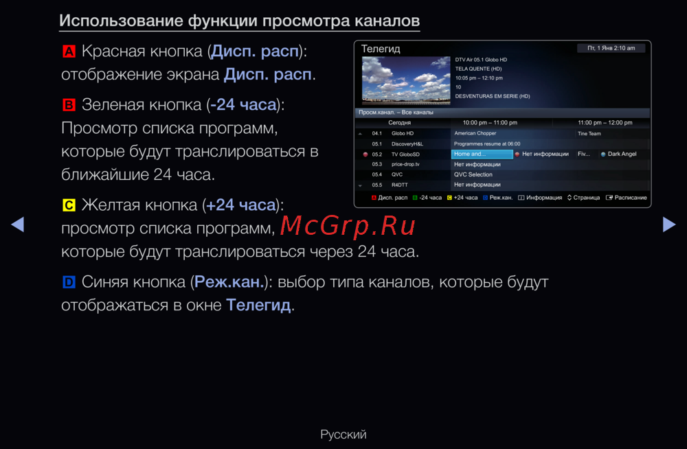 - При нажатии кнопки ch list на пульте дистанционного управления сразу отобразится экран список каналов p.10