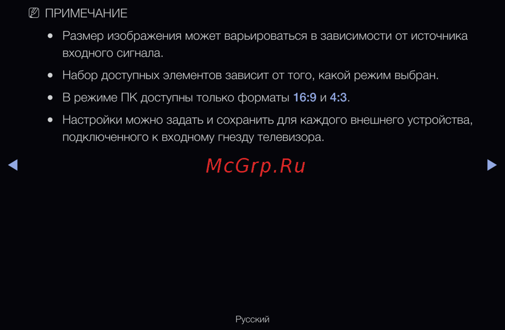 В режиме ПК доступны только форматы 16:9 и 4:3.