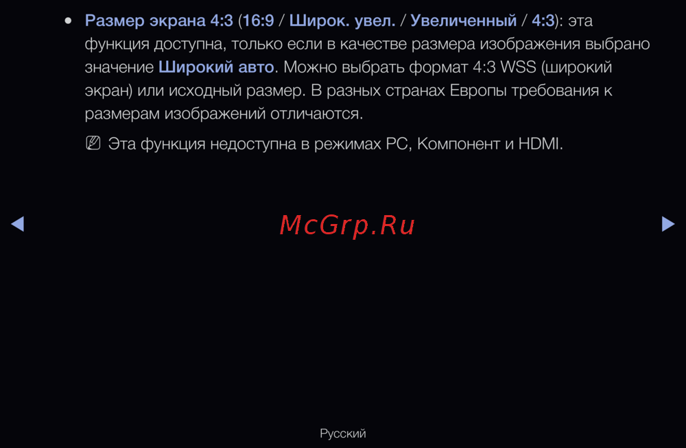 Размер экрана 4:3 (16:9 / Широк. увел. / Увеличенный / 4:3): эта