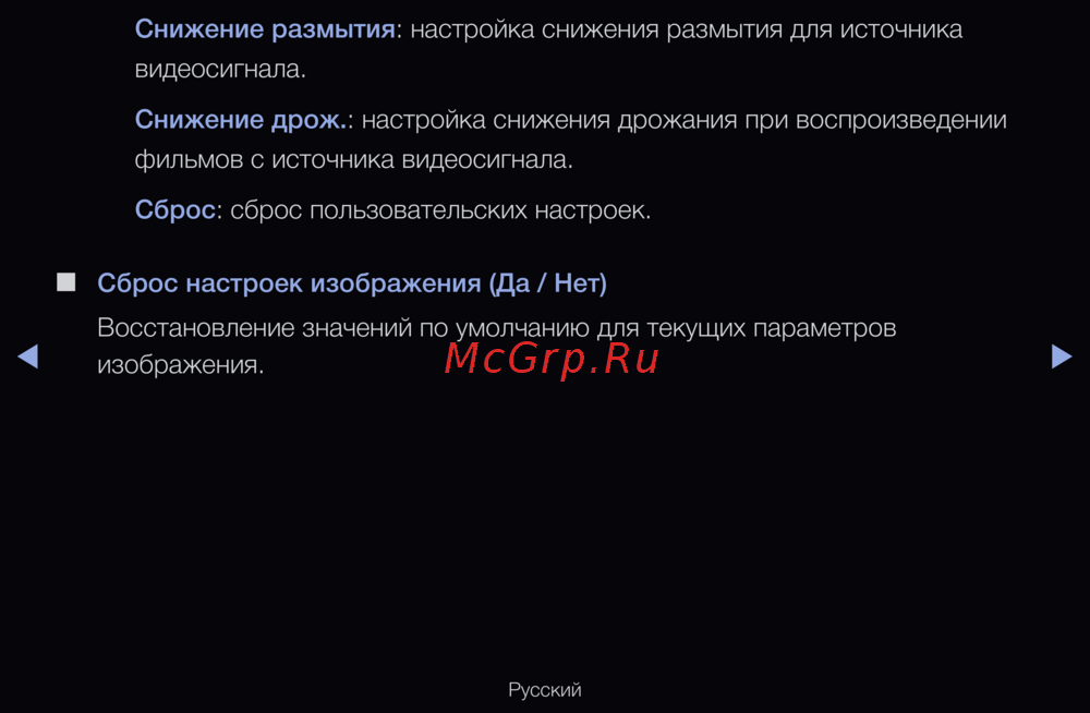 Сброс настроек изображения (Да / Нет)