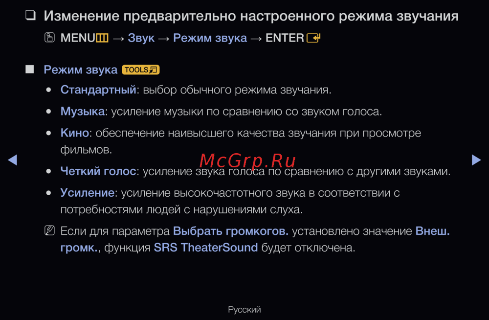 Samsung UE-46 D6100SW [77/318] Изменение предварительно настроенного режима звучания