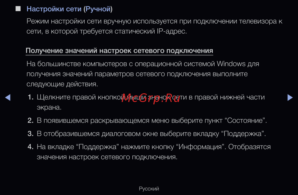 Узнайте, как вручную настроить сетевые параметры телевизора с использованием статического IP-адреса. Пошаговая инструкция для получения значений подключения.