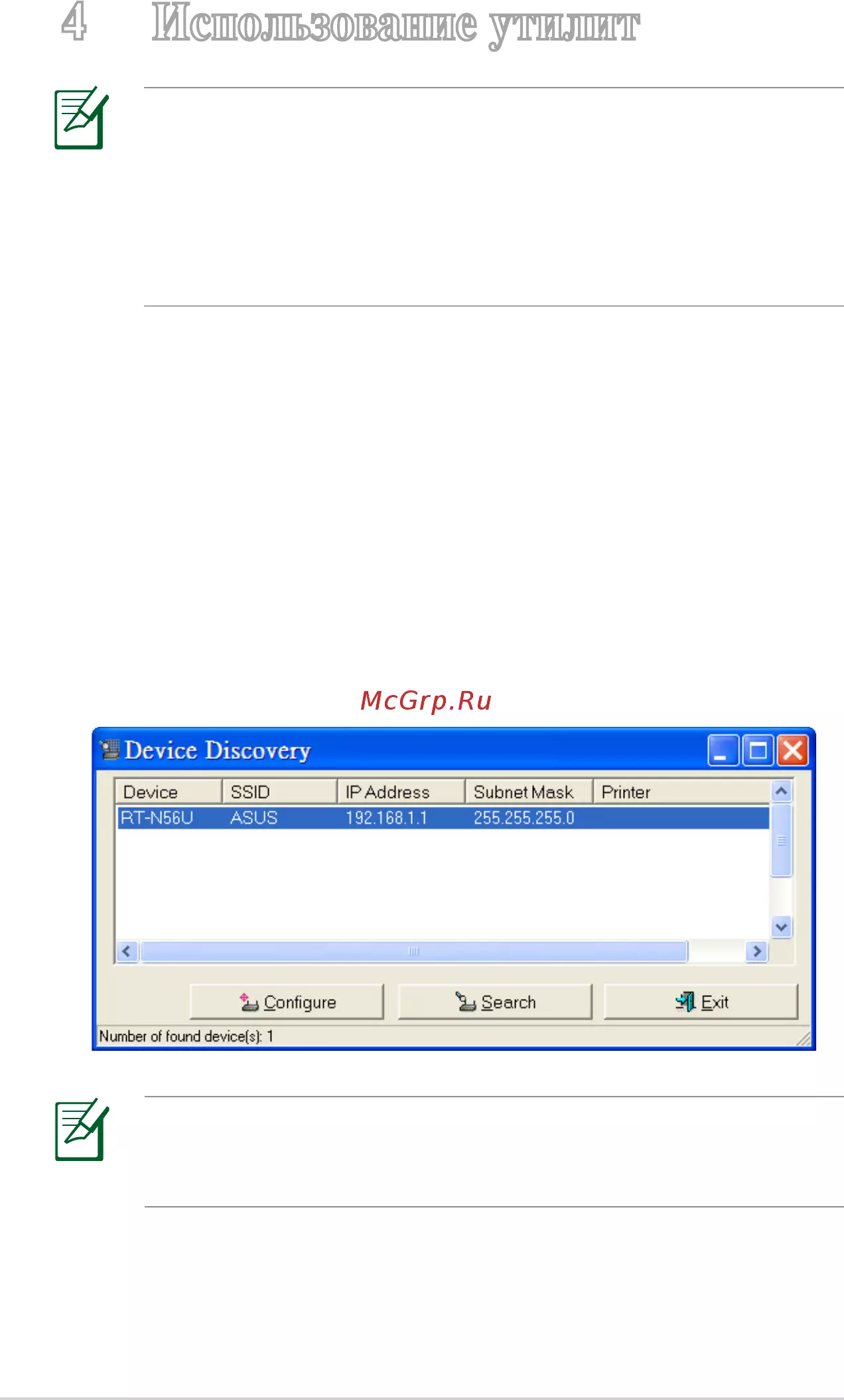- Device discovery asus wlan утилита которая обнаруживает роутер и позволяет его конфигурировать p.46