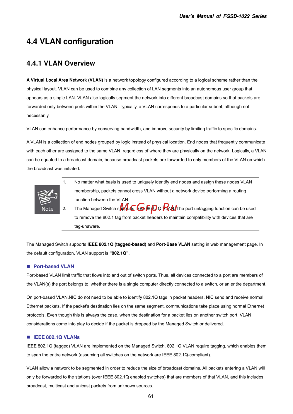 Planet FGSD-1022P — пользовательское руководство по конфигурации VLAN в сетях [61/197]