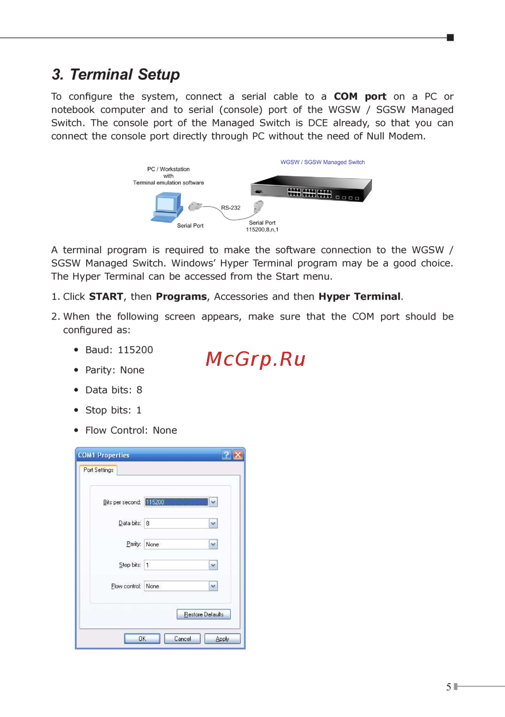 SGSWManagedSwitch. Windows’ Hyper Terminal programmaybe agood choice.