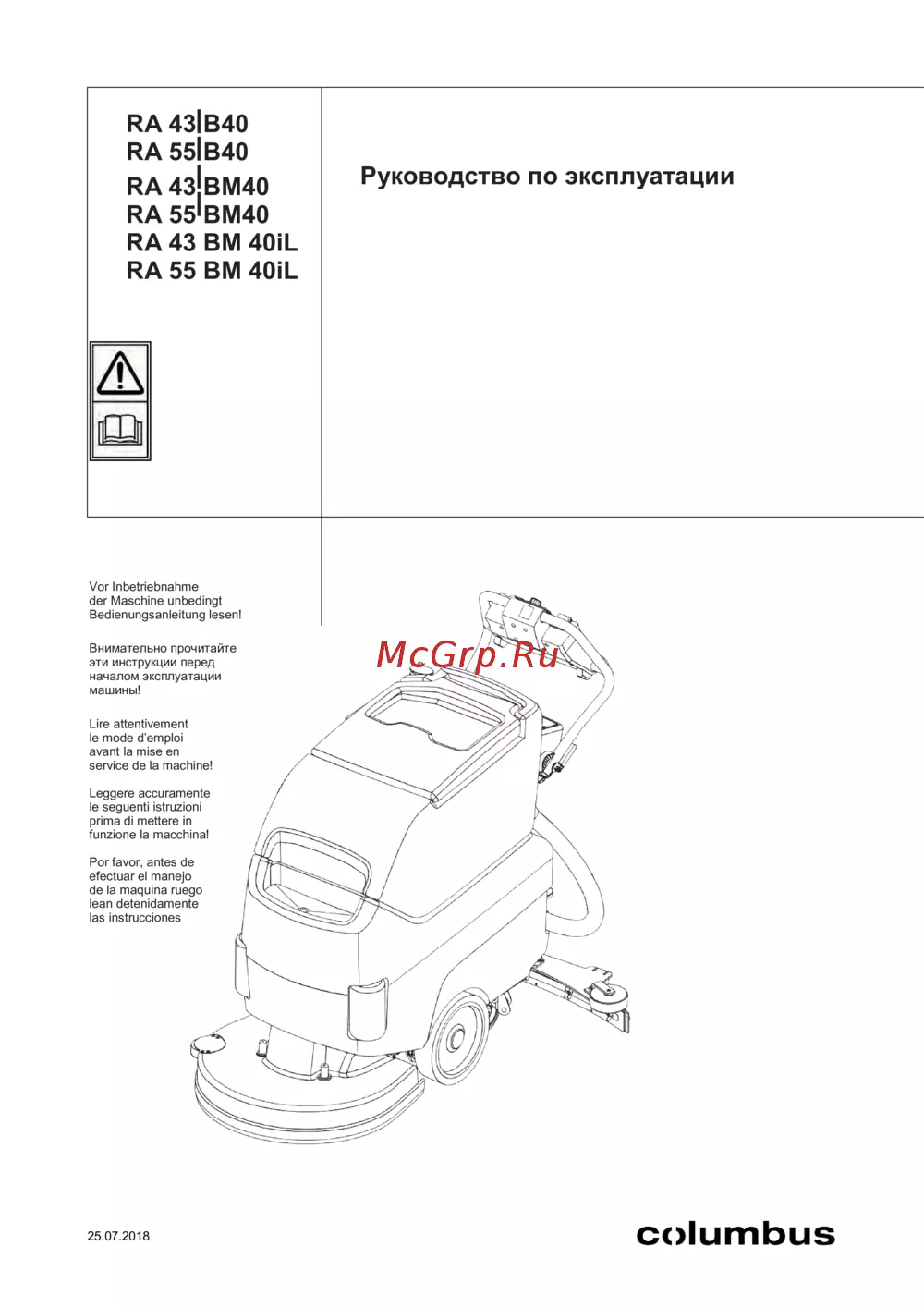 Columbus RA 55 BM 40iL — руководство по эксплуатации машин: важные инструкции [1/26]