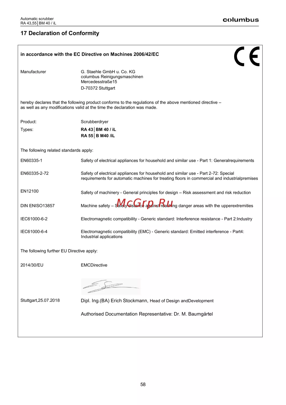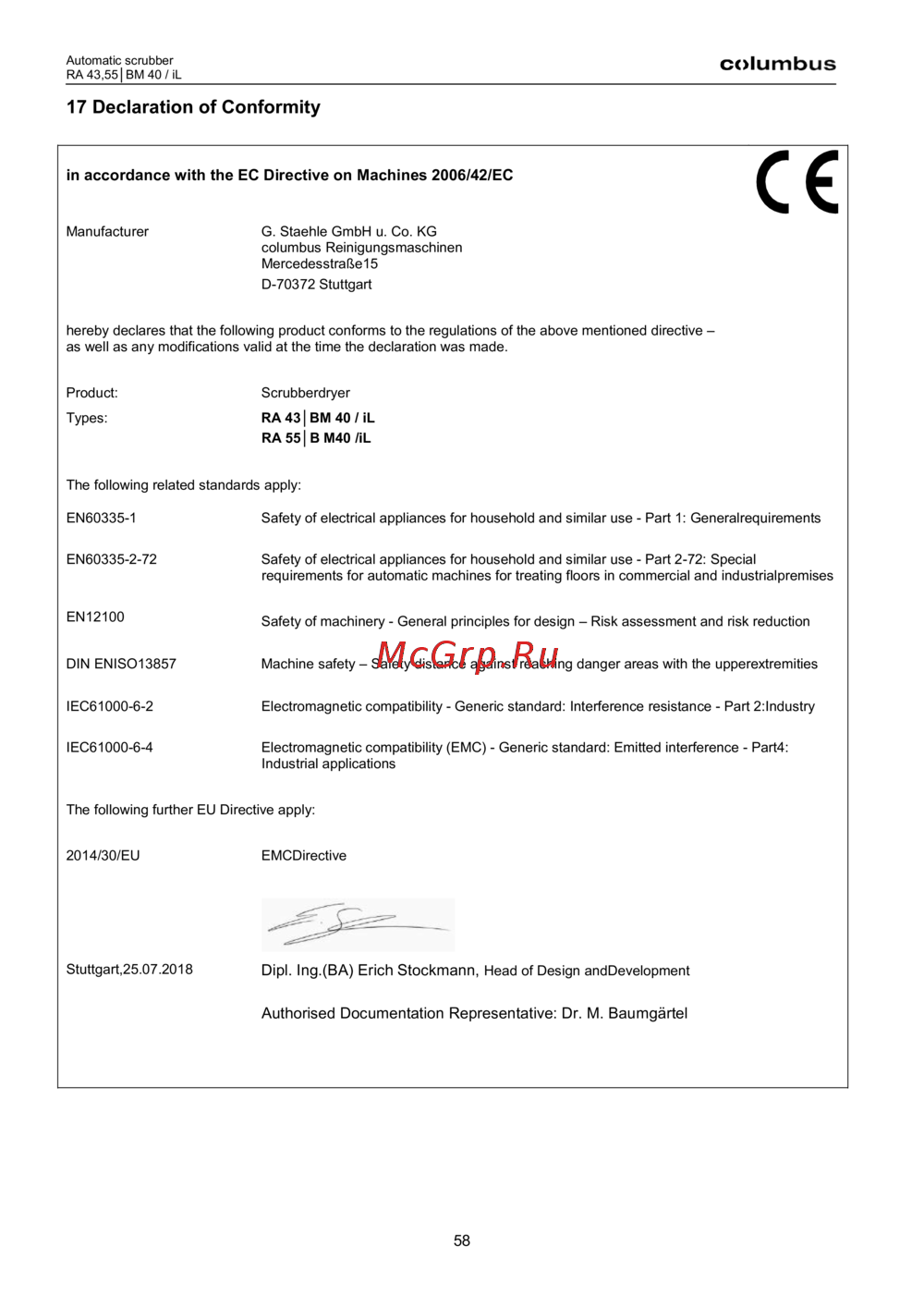 Columbus RA 55 BM 40iL — декларация соответствия автоматических уборочных машин [25/26]