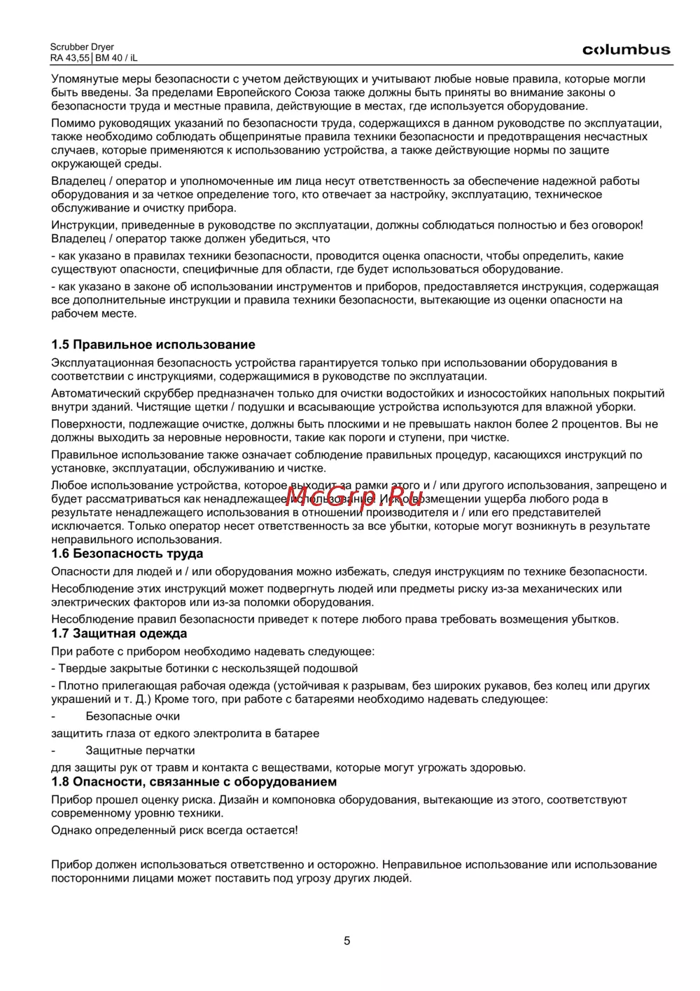 Columbus RA 55 BM 40iL — безопасное использование автоматических скрубберов для уборки [5/26]