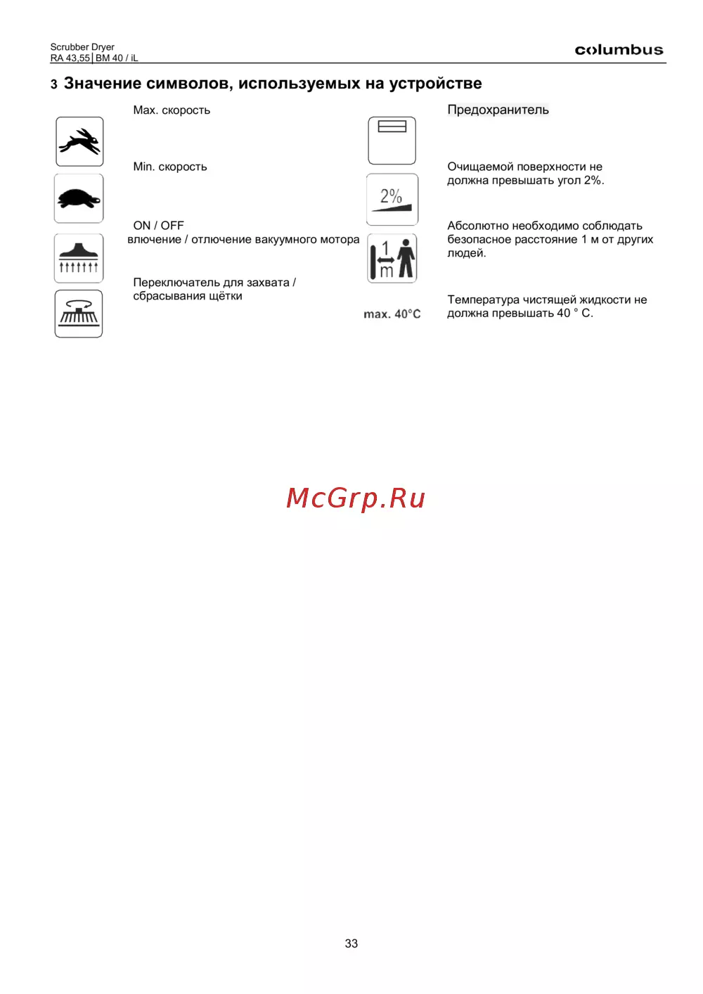Columbus RA 55 BM 40iL — инструкция по эксплуатации уборочного устройства с вакуумом [8/26]