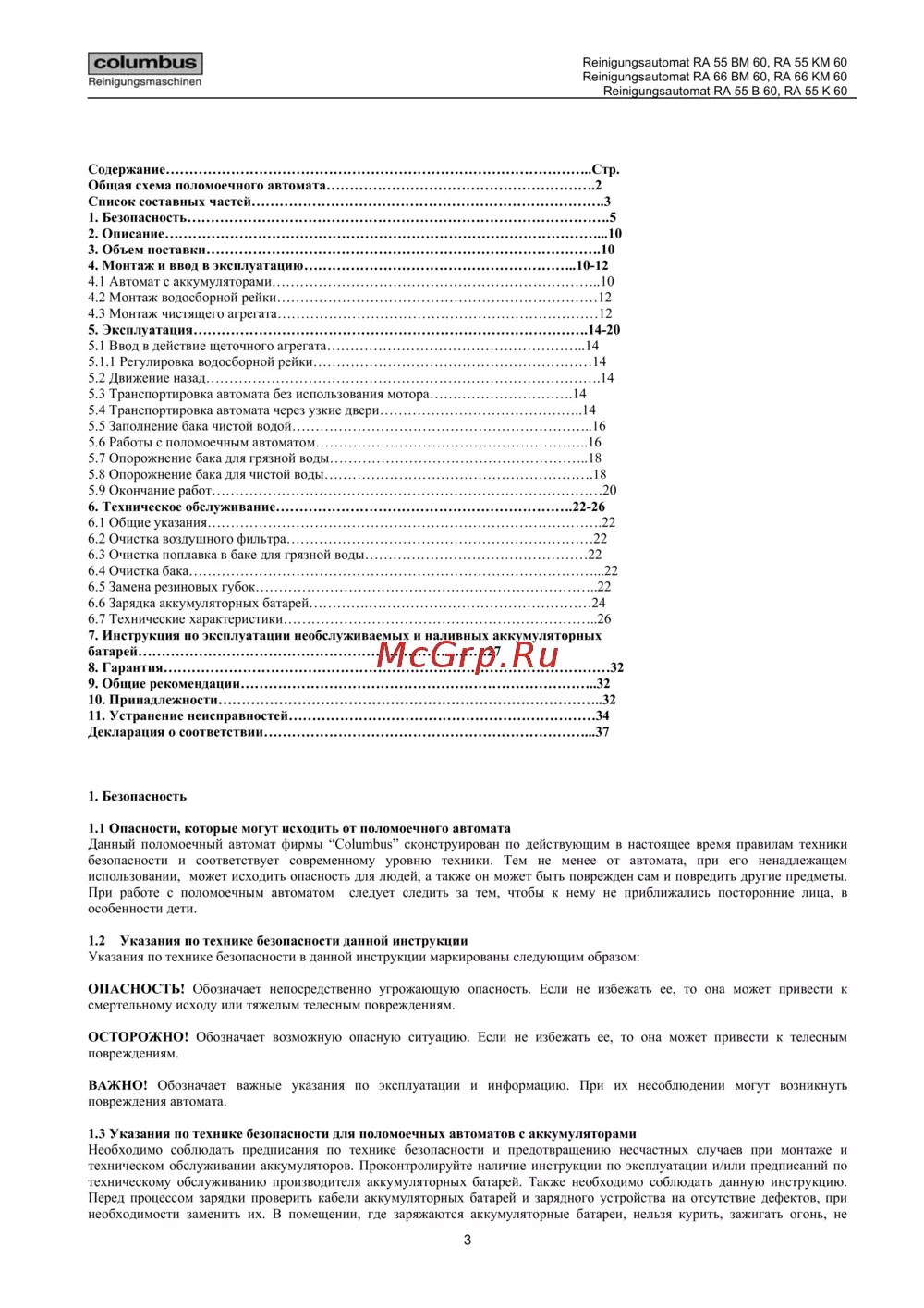 Columbus RA 55 B 60 — поломоечные автоматы: инструкция по эксплуатации и безопасности [4/17]