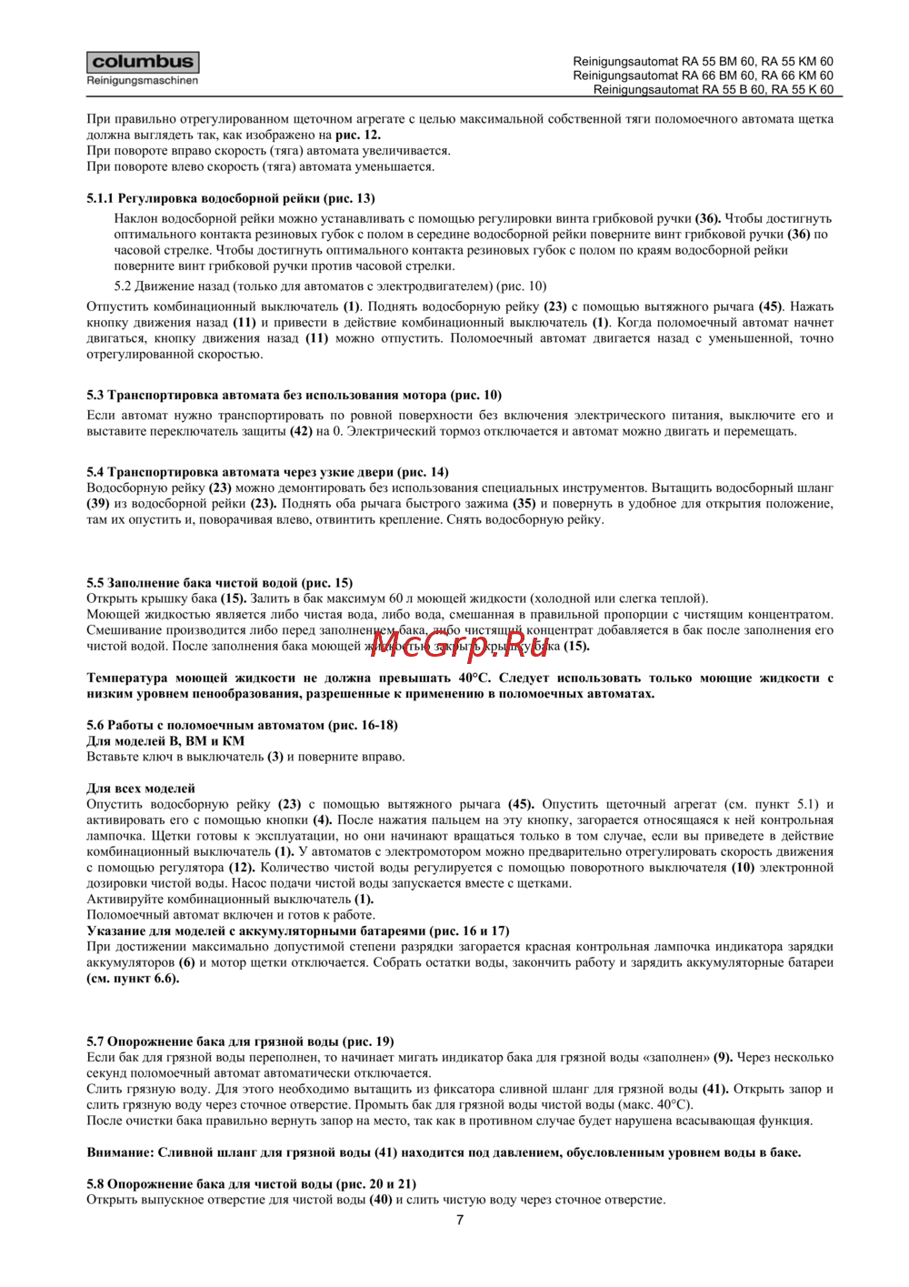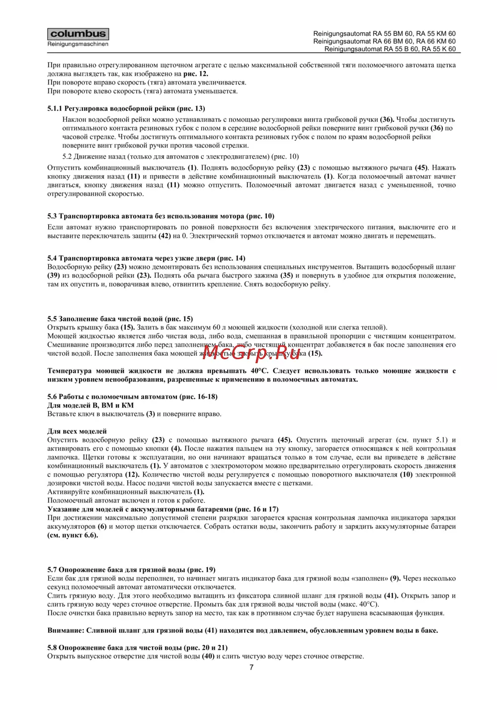 Columbus RA 55 B 60 — инструкция по эксплуатации поломоечных автоматов [8/17]