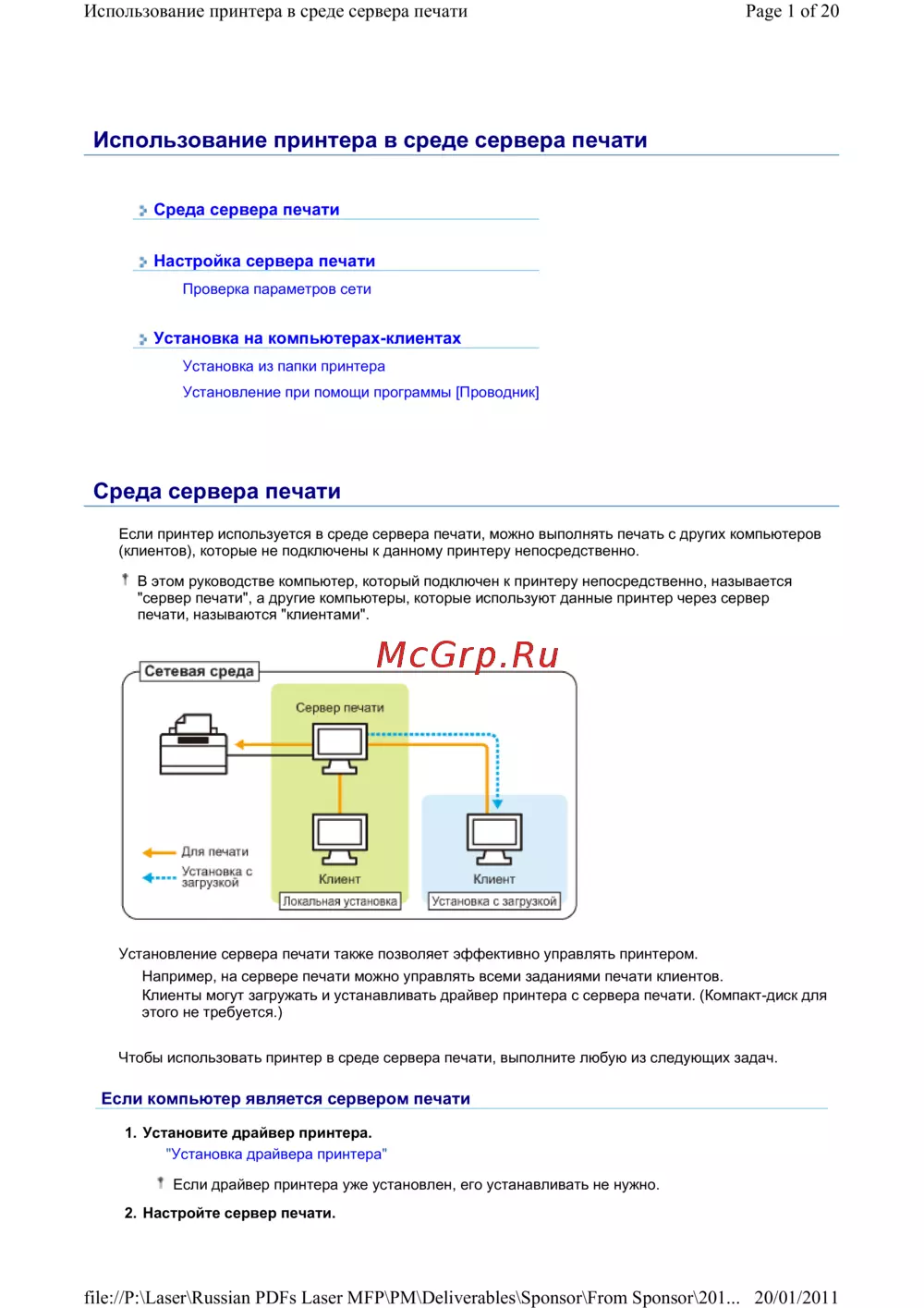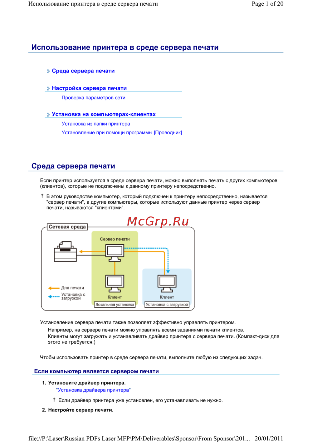 e 1 of 20Использование принтера в среде сервера печати