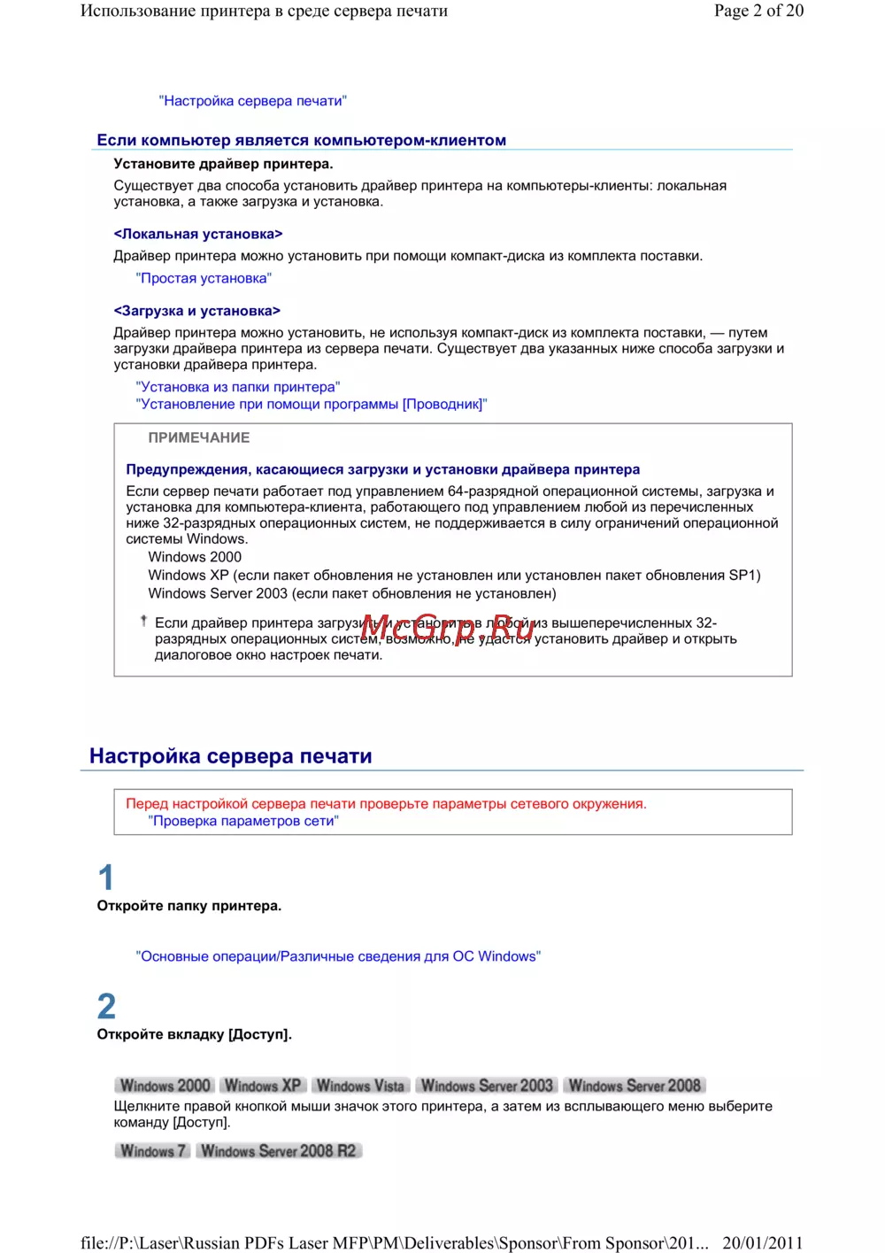 Если сервер печати работает под управлением 64-разрядной операционной системы, загрузка и