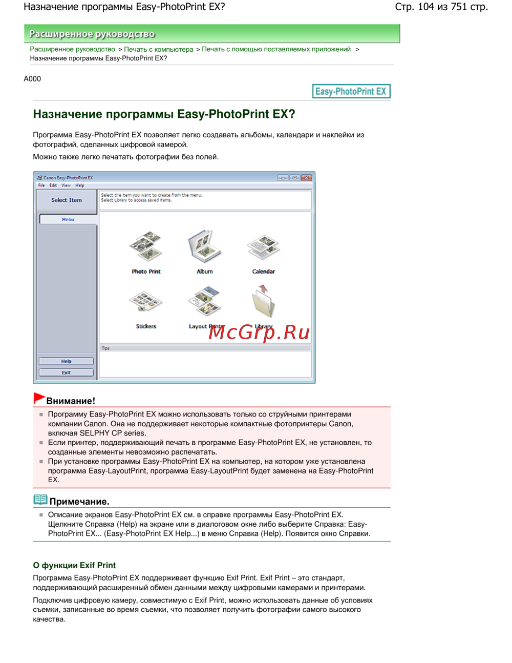Стр. 104 из 751 стр.Назначение программы Easy-PhotoPrint EX?