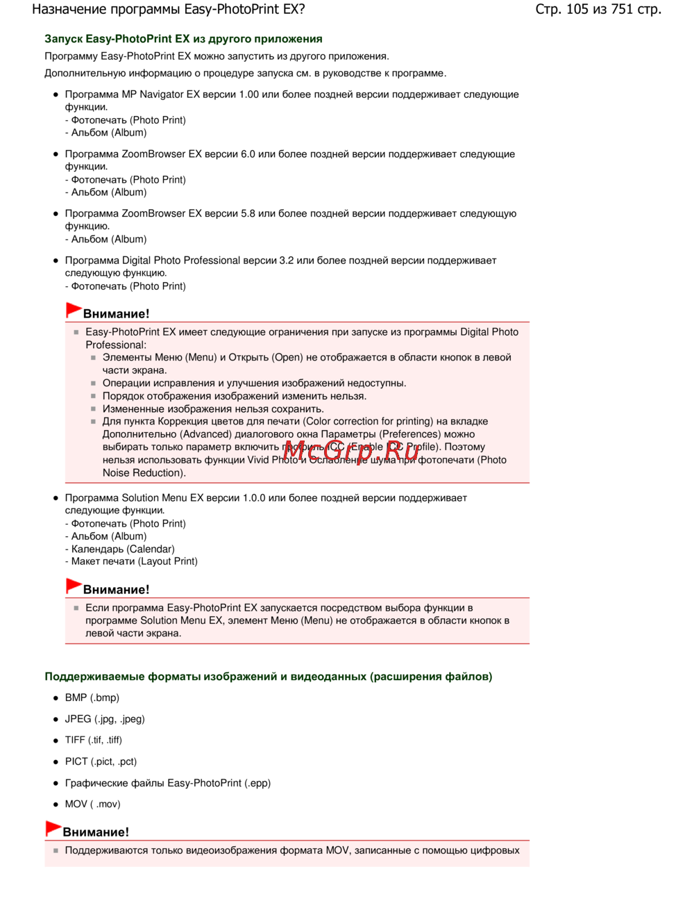 Canon Pixma MP280 — как запустить Easy-PhotoPrint EX из других приложений: поддержка функций и версий ПО [105/751]