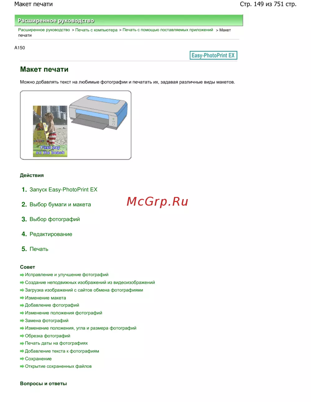 Canon Pixma MP280 — полное руководство по печати фотографий с компьютера [149/751]