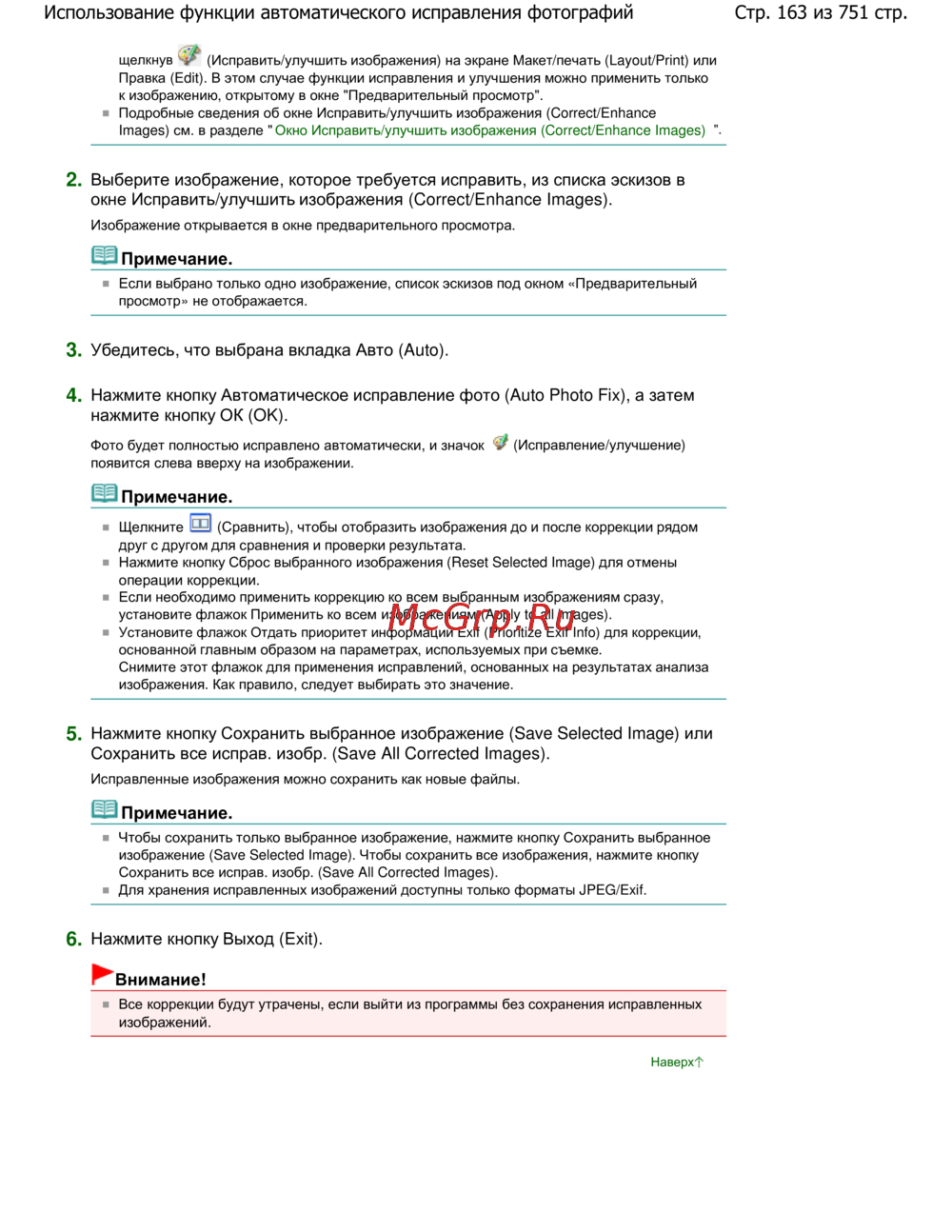 Стр. 163 из 751 стр.Использование функции автоматического исправления фотографий