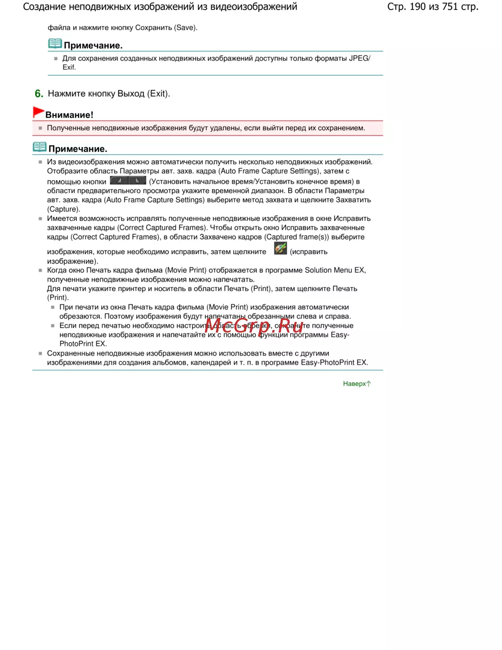 Стр. 190 из 751 стр.Создание неподвижных изображений из видеоизображений