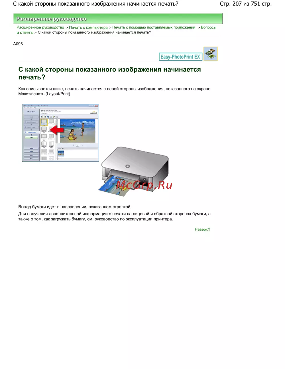 Стр. 207 из 751 стр.С какой стороны показанного изображения начинается печать?