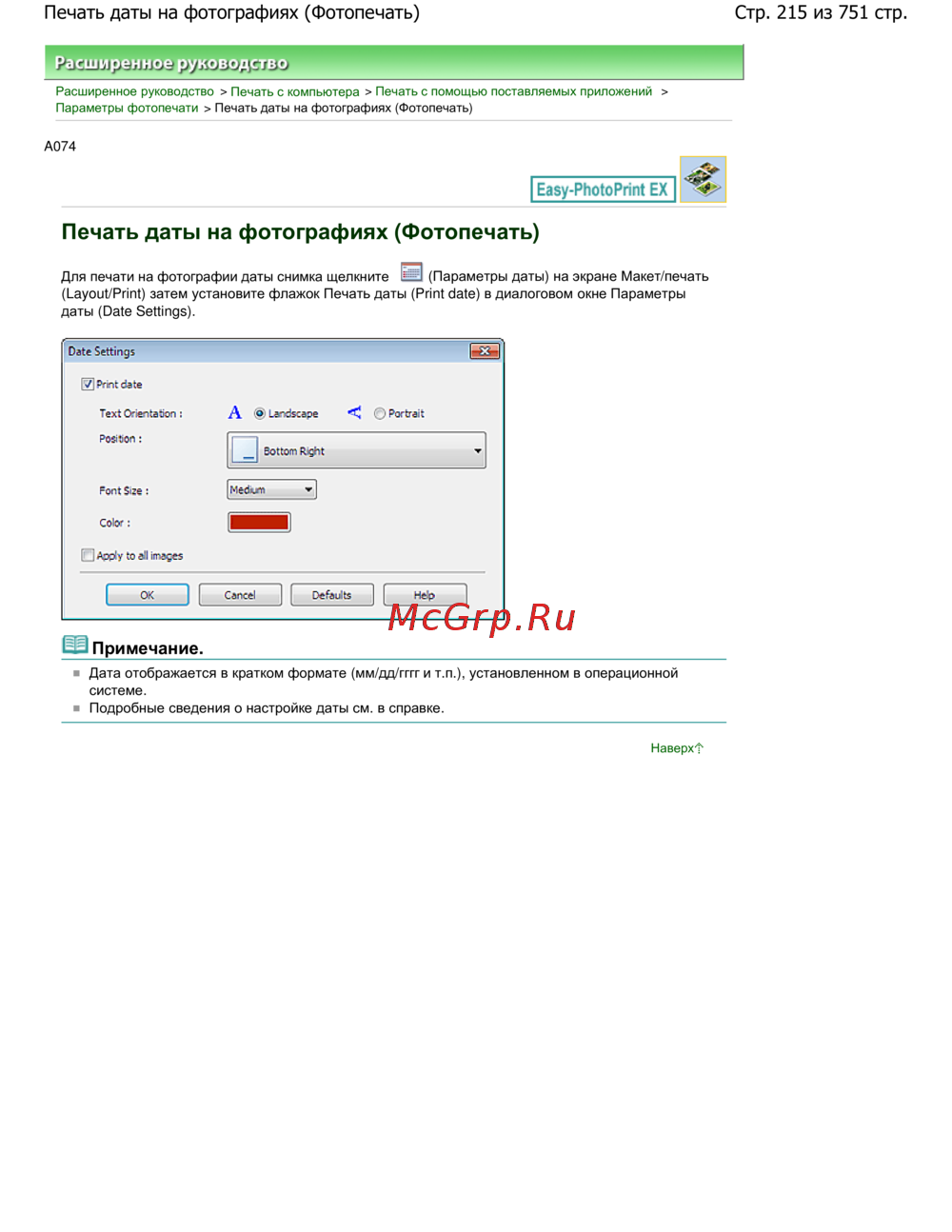 Стр. 215 из 751 стр.Печать даты на фотографиях (Фотопечать)