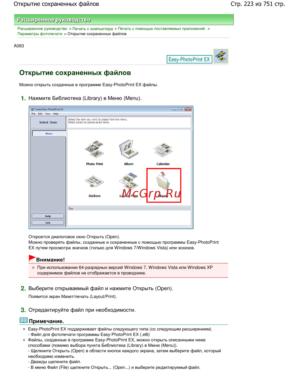 Файлы, созданные в программе Easy-PhotoPrint EX, можно открыть описанными ниже