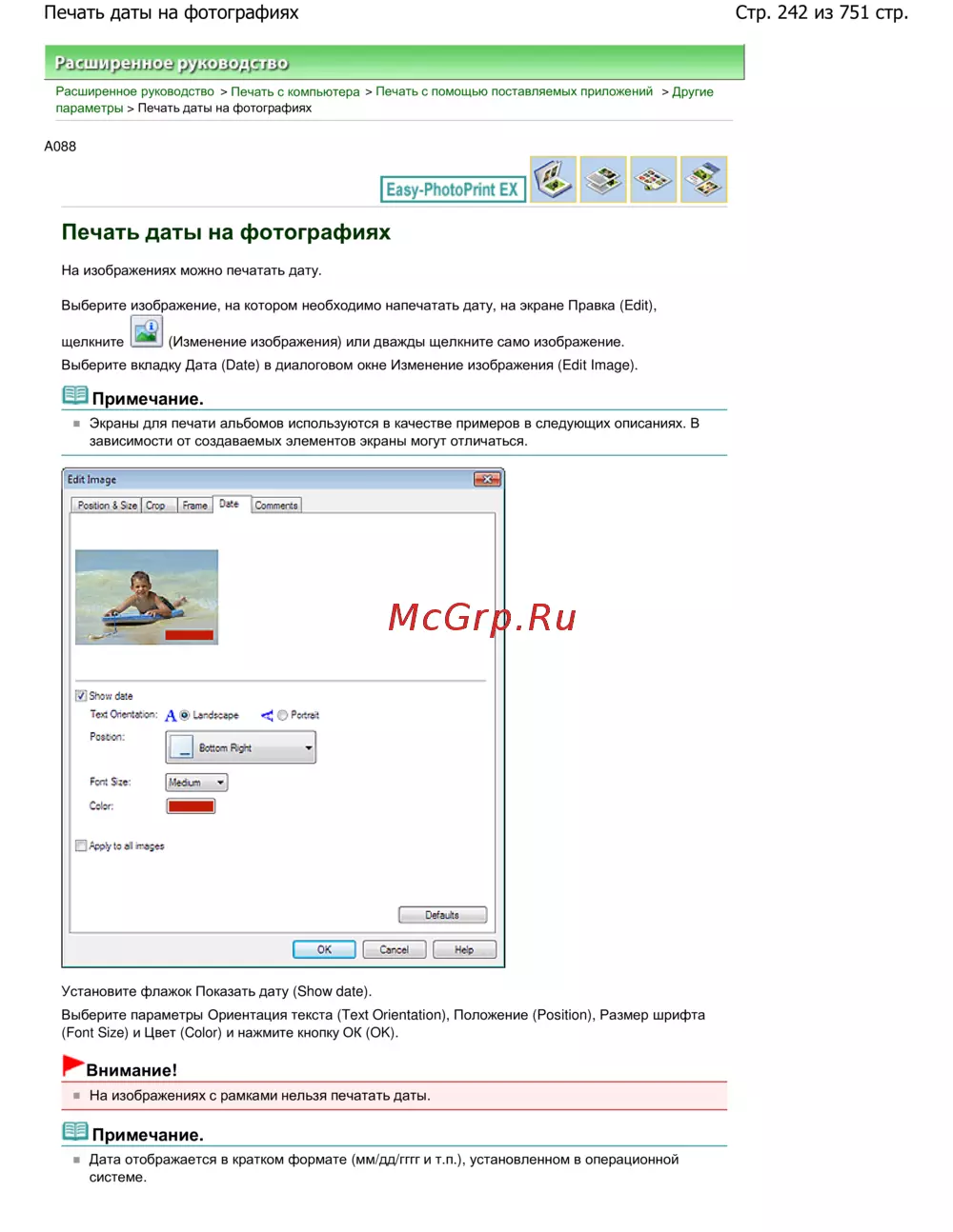 Стр. 242 из 751 стр.Печать даты на фотографиях