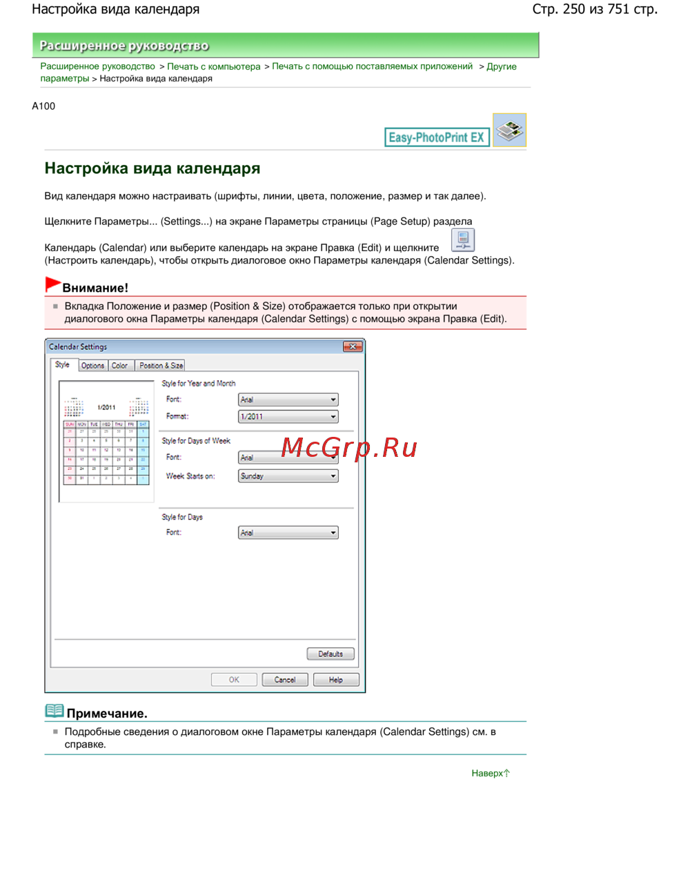 Canon Pixma MP280 — настройка вида календаря: параметры и советы [250/751]