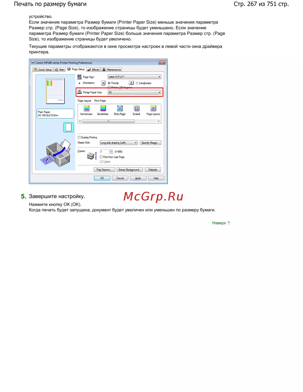 Canon Pixma MP280 — настройка печати: размер бумаги и страницы для оптимального результата [267/751]