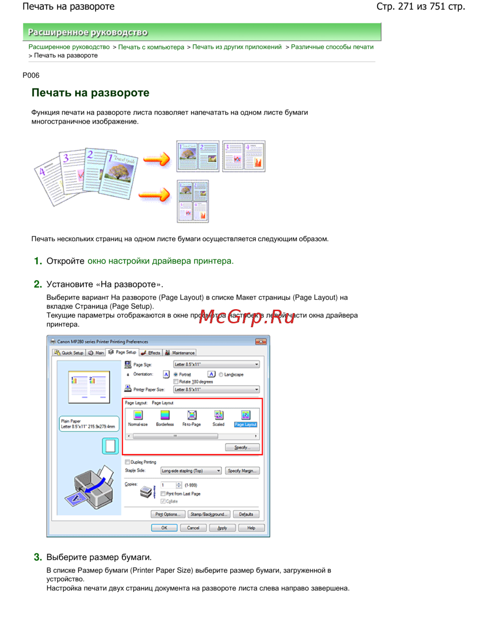 Canon Pixma MP280 — как настроить печать на развороте для многостраничных документов [271/751]