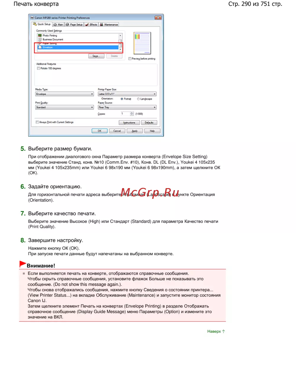 Canon Pixma MP280 — как настроить печать на конвертах: пошаговое руководство [290/751]