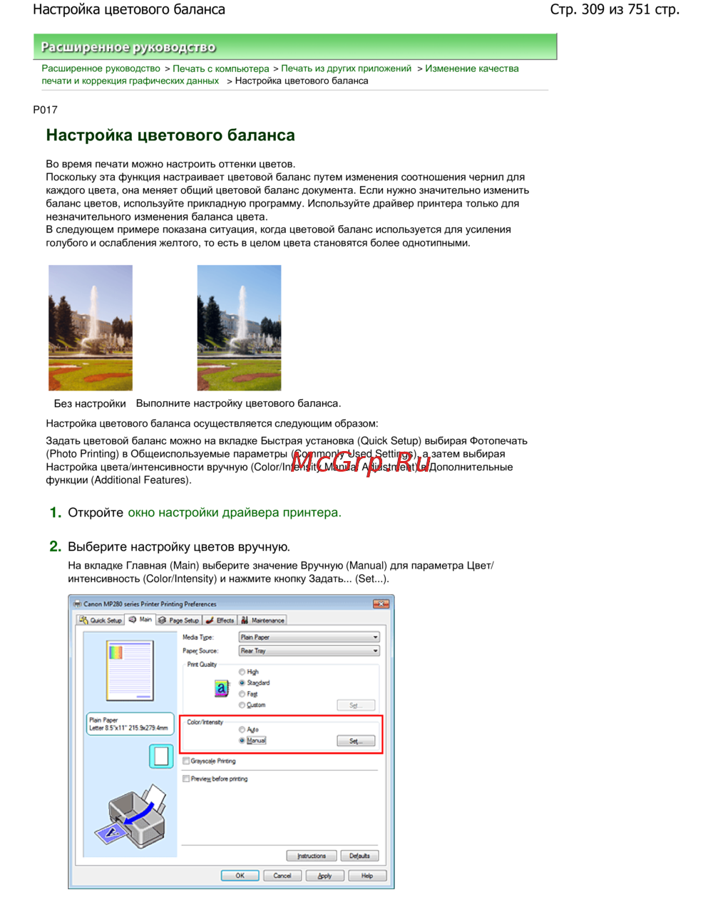 Canon Pixma MP280 — как настроить цветовой баланс при печати с компьютера [309/751]