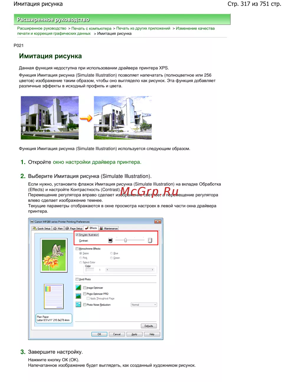 Canon Pixma MP280 — как использовать функцию имитации рисунка для печати изображений [317/751]