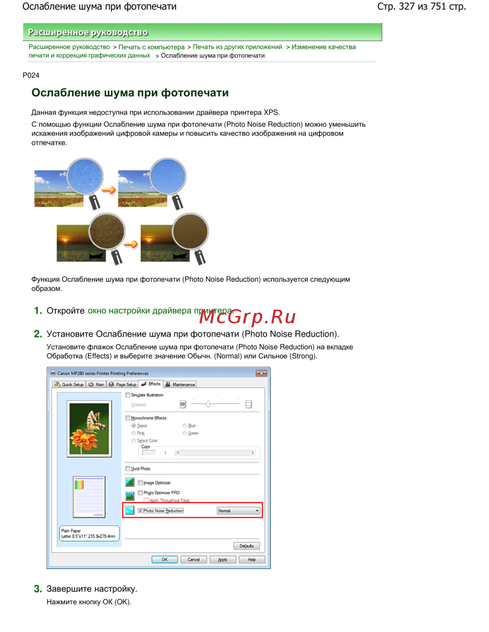 Canon Pixma MP280 — как уменьшить шум при фотопечати для лучшего качества изображений [327/751]
