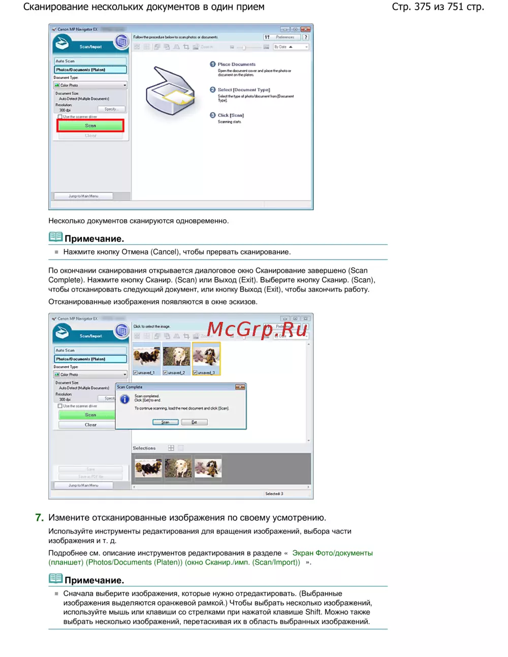 Стр. 375 из 751 стр.Сканирование нескольких документов в один прием