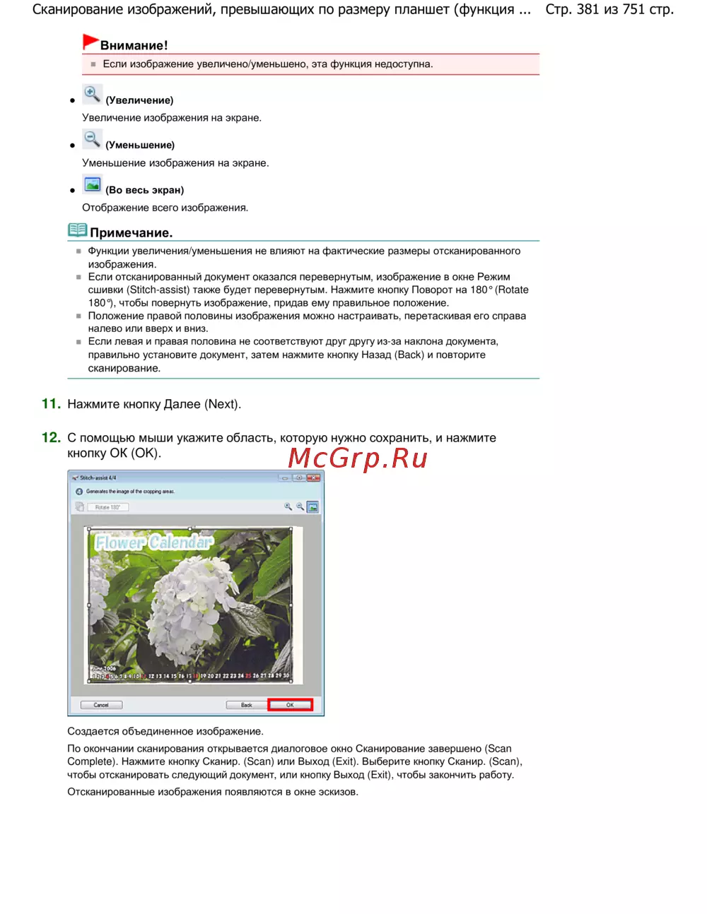 Стр. 381 из 751 стр.Сканирование изображений, превышающих по размеру планшет (функция ...