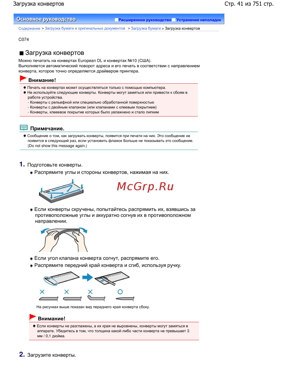 Сообщение о том, как загружать конверты, появится при печати на них. Это сообщение не