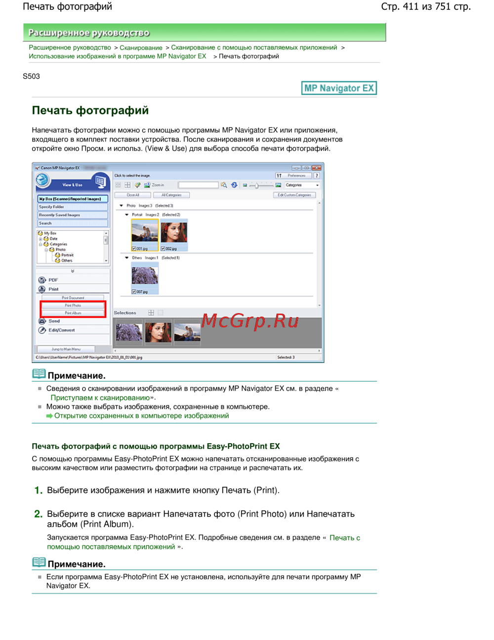 Если программа Easy-PhotoPrint EX не установлена, используйте для печати программу MP
