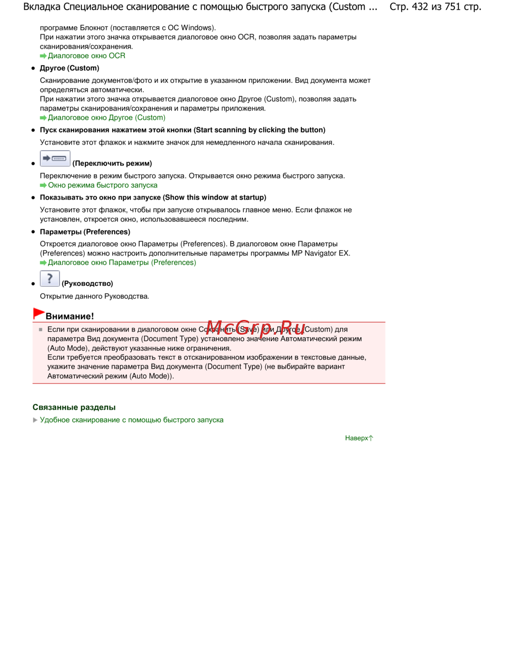 Стр. 432 из 751 стр.Вкладка Специальное сканирование с помощью быстрого запуска (Custom ...