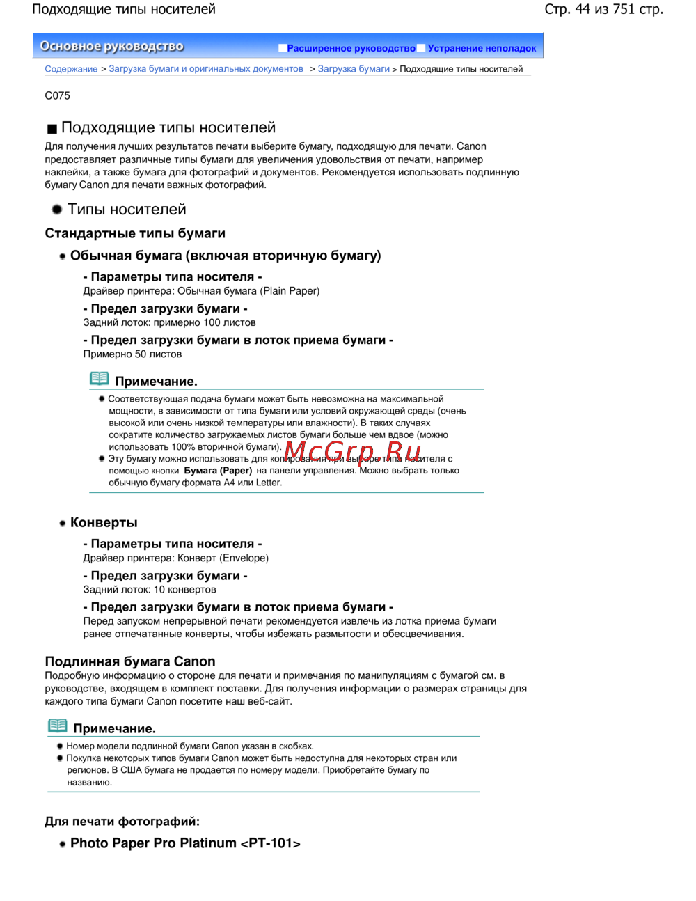 Canon Pixma MP280 — руководство по выбору бумаги для печати и устранению неполадок [44/751]