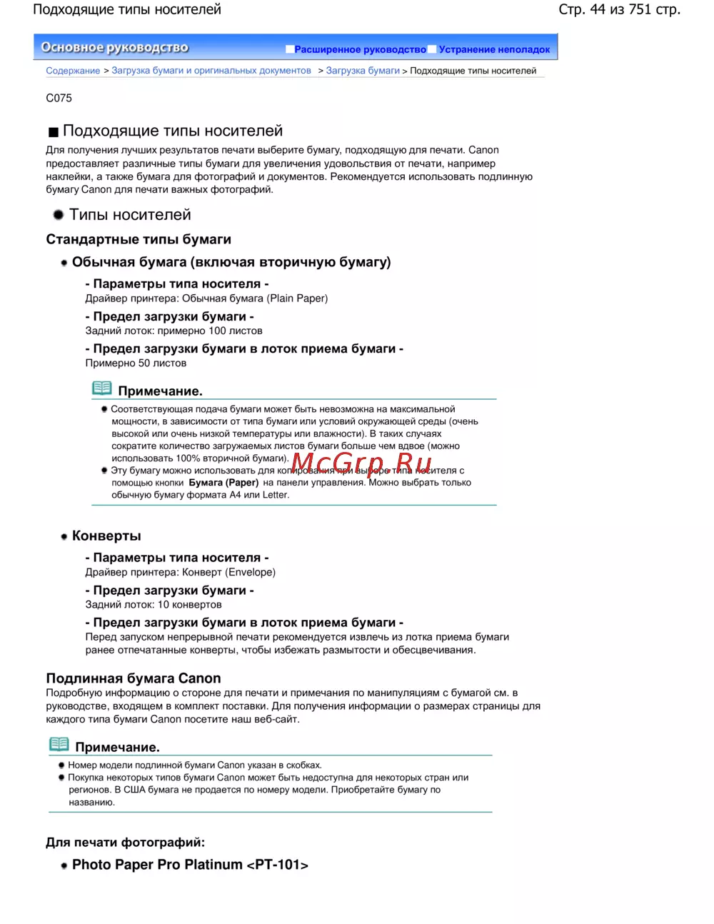 каждого типа бумаги Canon посетите наш веб-сайт.