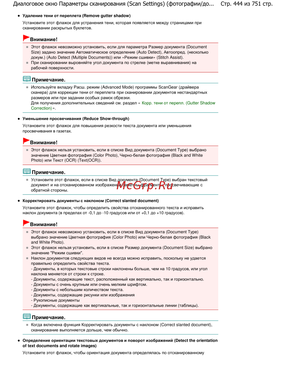 Стр. 444 из 751 стр.Диалоговое окно Параметры сканирования (Scan Settings) (фотографии/до...