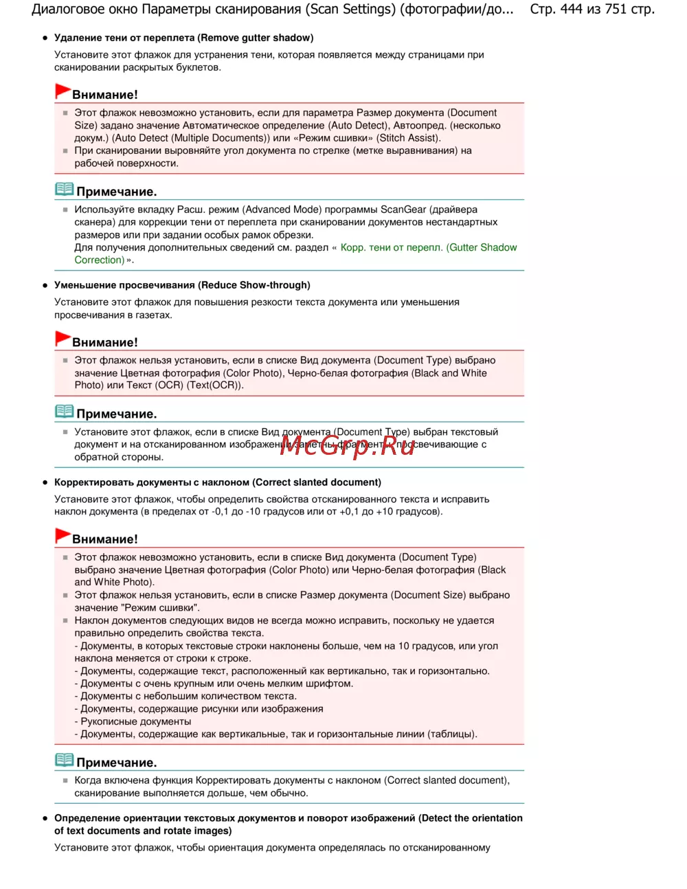 Узнайте, как настроить параметры сканирования для устранения теней от переплета, уменьшения просвечивания и коррекции наклона документов. Оптимизируйте качество сканов.